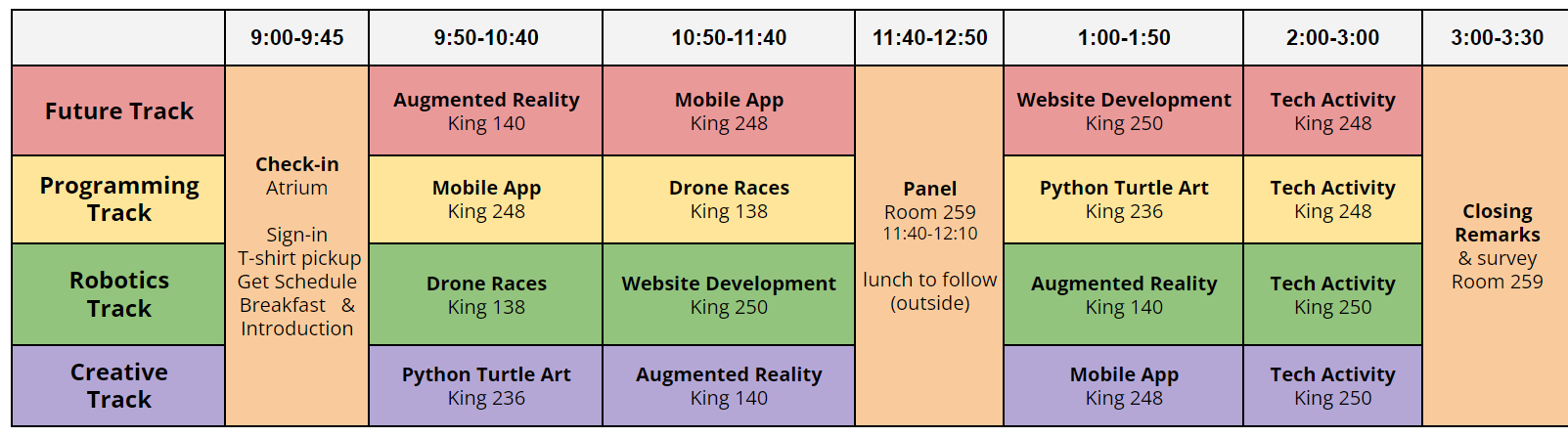 - Drone races - Have you ever wanted to fly your own drone? This is the session for you! In this challenging workshop, you will learn how to control a drone with code and fly it through an obstacle course. Show off your skills and see if you can navigate the drone through the entire course!